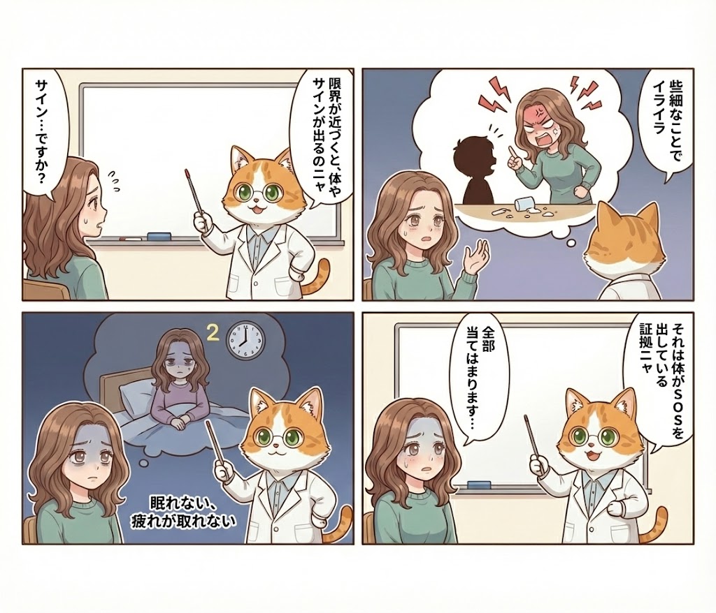 もし、以下のような症状が出ているなら、それはあなたの心が「もう無理!」と叫んでいるサインかもしれません。